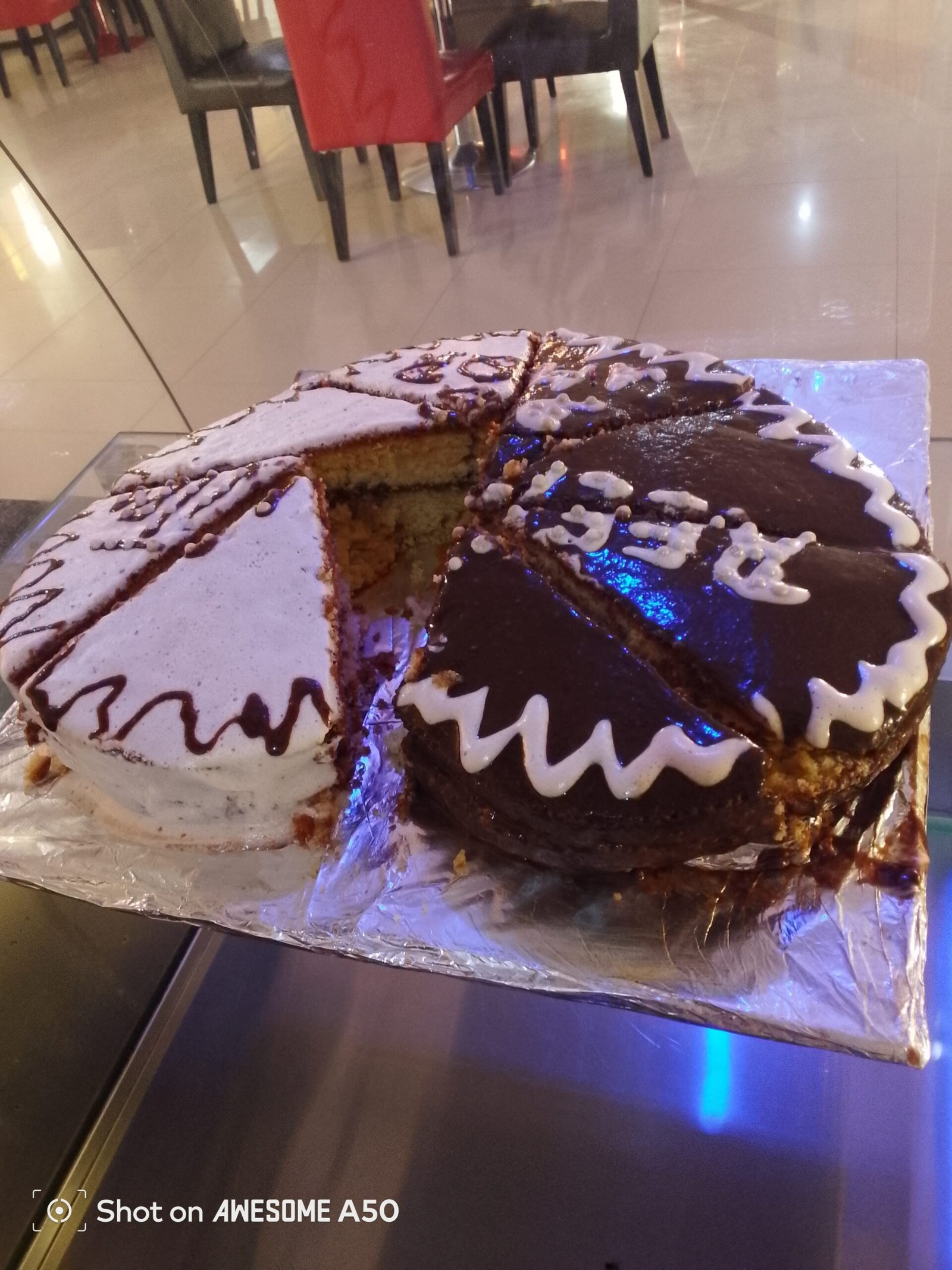 Fatias de Bolo de Chocolates, Bolo de Ginguba e Bolo Simples.